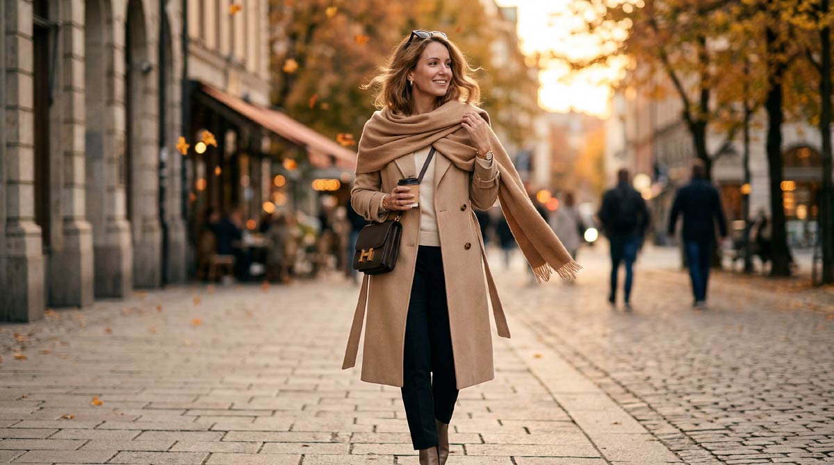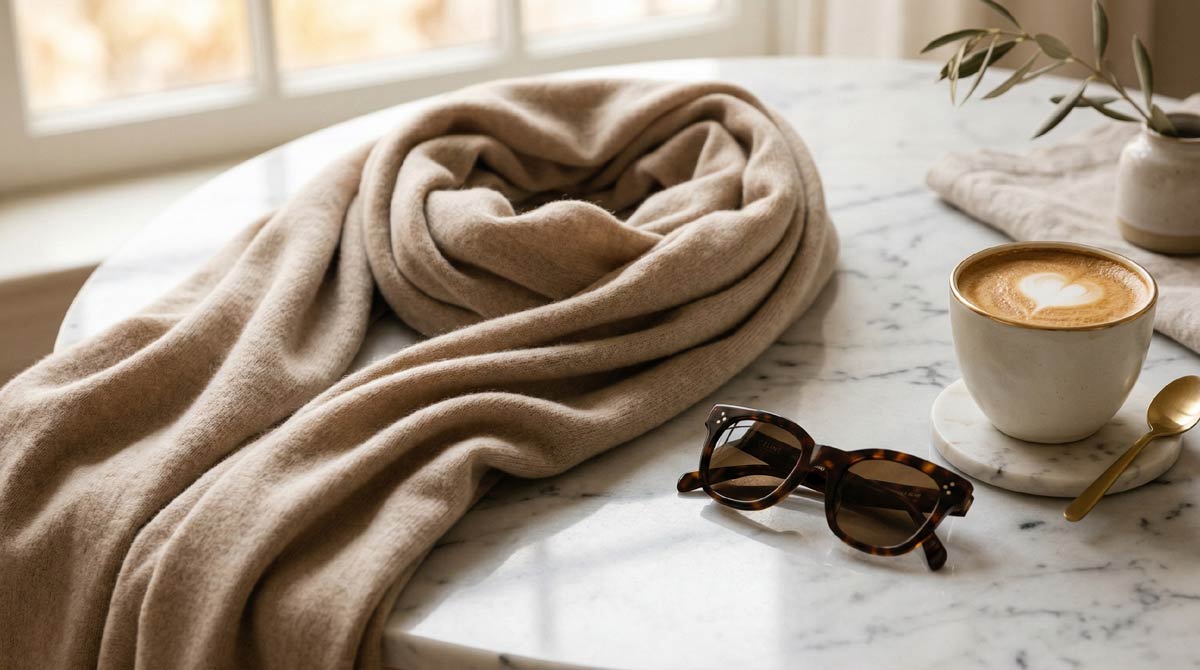 Легкость. Кашемировый шарф весит в среднем 100-150 граммов, при этом греет как толстая шерстяная вещь весом 400-500 граммов. Для людей, которые постоянно в движении — а знаменитости именно такие — это критично. Никакой тяжести на шее, никакой усталости к концу дня.